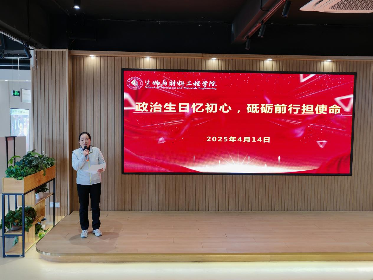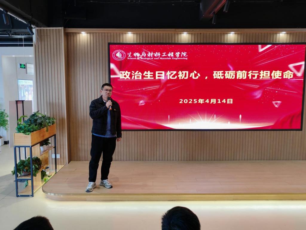 为进一步强化党员的身份意识和责任担当,厚植党员的政治情怀,4月14日下午,生物与材料工程学院党委开展师生党员2025年第一季度“政治生日忆初心,砥砺前行担使命”主题党日活动。学院党委书记葛崇勋、副书记贾岱、副院长李新星以及全体师生党员参加活动,共同见证这一庄重而温暖的时刻。
