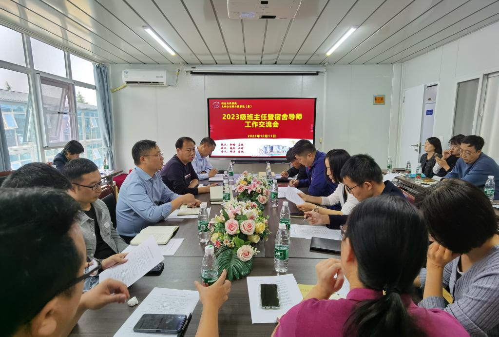 为充分发挥班主任暨宿舍导师在新生教育与管理中的重要作用,我院于10月11日下午召开2023级班主任暨宿舍导师工作交流会。院党委委员、协助负责行政工作魏连锁,党委委员、协助负责学生工作贾岱,学工办主任胡星、新生辅导员、全体新生班主任参加了会议。