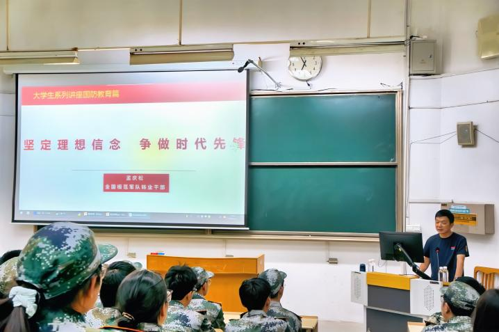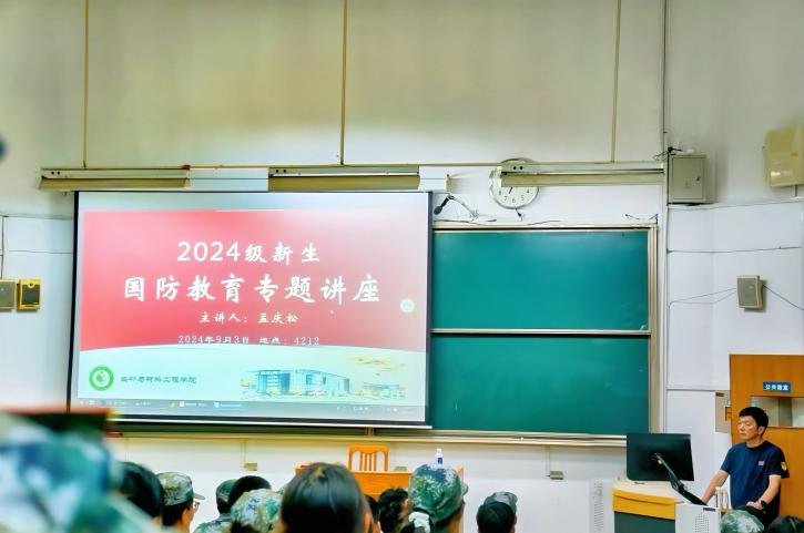 为了进一步强化新生的国防意识,激发爱国情怀,2024年9月3日,在4号教学楼212,我院邀请了全国模范军队转业干部孟庆松同志,为2024级新生带来了一场生动的国防教育专题讲座。