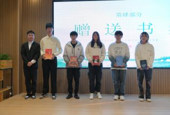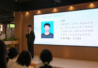 活动伊始,主持人热情开场,介绍世界读书日及读书重要性,并开展趣味互动,通过“看图识书名”活动调动同学们的积极性,现场气氛热烈。随后,主持人引入各国读书现状,提出“读书到底有没有用?”的辩论主题,引发同学们热烈讨论。紧接着,学生代表刘涛分享书籍《三体》,书籍作者在“后人类”思考方面取得了重大突破,其作品构建了科学与文学的互动方式,并将道德内涵融入对科技的辩证思考之中,希望读者能在宇宙观中激发思考与想象力。最后2024级辅导员蒋月亮老师分享书籍《榜样的力量》,介绍屠呦呦等科学家的先进事迹,激励学生干部向榜样学习,为民族复兴奋斗。蒋老师向同学们赠送书籍《榜样的力量》《三体》,寄托对年轻一代的期盼。